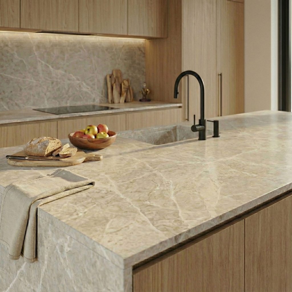 Összességében a lakás egységes, átgondolt koncepció mentén készült: modern, visszafogott és időtálló, ahol a fa, a kő és a természetes színek finom egyensúlya elegáns, városi otthont hoz létre.